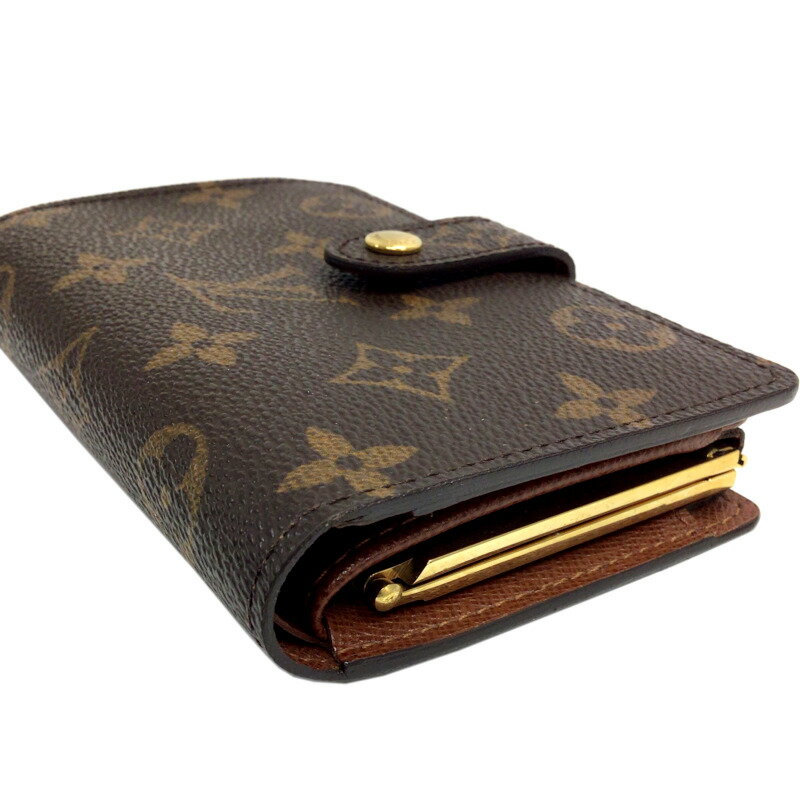 商品詳細 管理番号 120121028 ブランド LOUIS VUITTON / ルイ・ヴィトン 型番 M61674 商品名 ポルトフォイユ・ヴィエノワ ガマ口財布 素材 モノグラムキャンバス カラー モノグラム 対象 レディース サイズ 幅:約13cm高さ:約8.5cmマチ:約2cm 仕様 開閉式:スナップボタン内側: カードポケット x 4、オープンポケット x 2 詳細備考 札入れ1 小銭入れ1 付属品 当店販売証明書【付属品欄と画像に写っている物が付属品の全てとなります】 コンディション 小銭入れの汚れ金具の小傷全体的に使用感 取扱店舗 こちらの商品は「OKURA戎橋中央店」のお取り扱いになります。